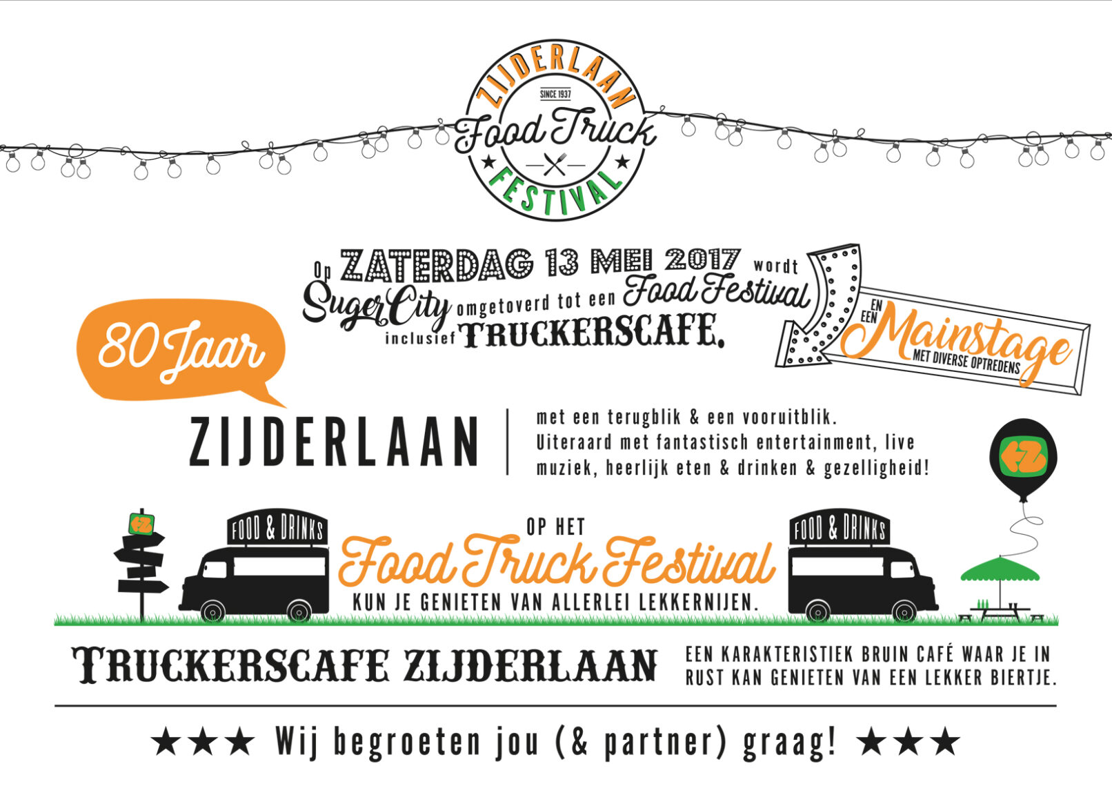 Voor het jubileum van Zijderlaan had ik de eer om hun jubileumhuisstijl vorm te geven. Ik ontwierp daarbij zowel het officiƫle jubileumlogo als een speciaal logo voor het Zijderlaan Foodtruck Festival.